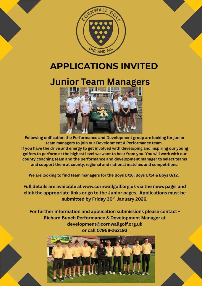 The Performance & Development Team are looking to appoint a team of coaches to drive forward and raise the standards of representative competitive golf in Cornwall.