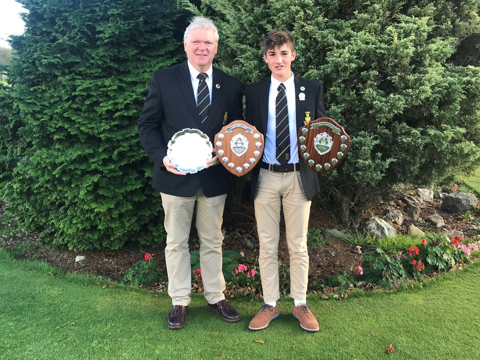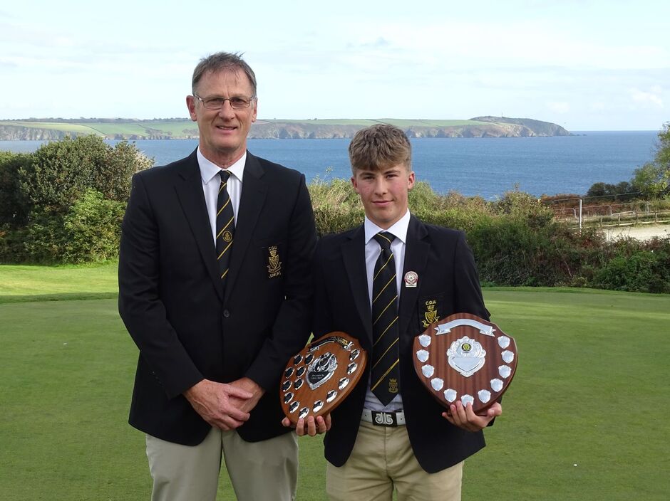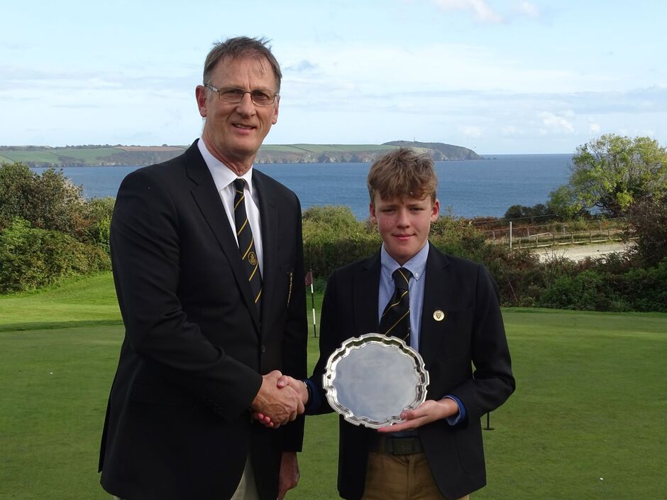 In the U18 Scratch Wilson (above with CGU Juniors Vice President Simon Ferguson-Smith) finished on 80.00 as comfortable winner from Kevern (67.50), with Thomas Stephens (Trevose) third on 63.00. Carlyon Bay's Alec Nile finished fourth on 58.00.