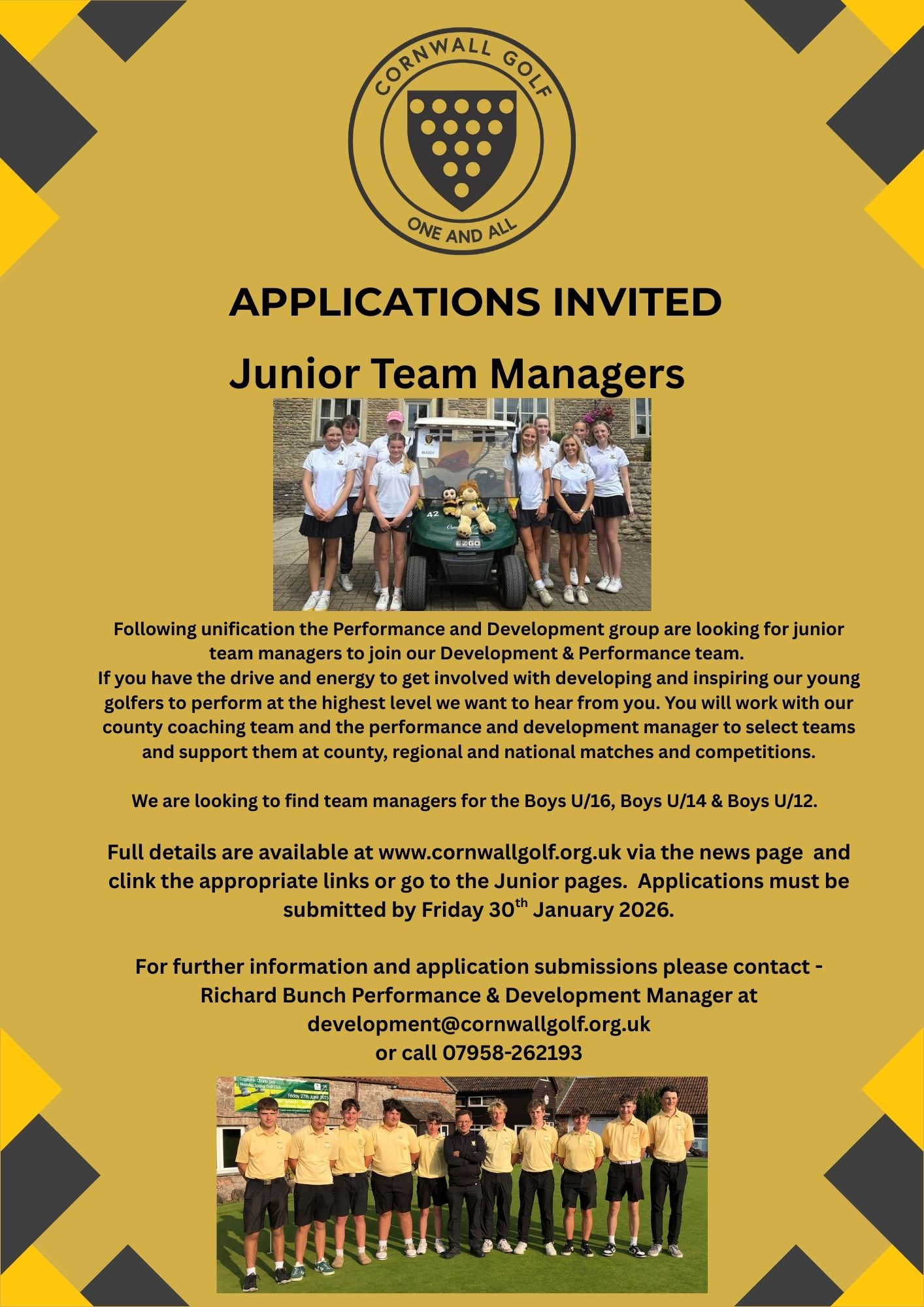 Full descriptions of the role adverts are below and should you want any further details of the roles please don't hesitate in contacting the Cornwall Golf Performance and Development Manager Richard Bunch on development@cornwallgolf.org.uk / 07958 262193